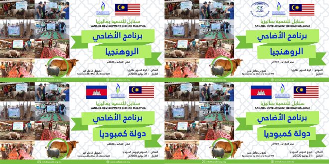 برنامج توزيع الأضاحي للمحتاجين بدأ في التاريخ ٣٠ /٠٧\٢٠٢٠م في شهر ذي الحجة تحت مساعدة مشروع سنابل للتنمية البشرية بماليزيا بالتعاون مع جمعية التضامن الاجتماعي لمسلمي في كمبوديا، وكان عدد المحتاجين ١٠٠ شخصا في منطقة أمبيل محافظة تبوغ خموم, كمبوديا. وكان المسلمون مسرورين جداً من هذه الأضحية لتكون أطعمة لهم في شهر ذي الحجة المباركة. وأعطى المسلمون كلمة الشكر لفاعل الخير. ونسأل الله أن يجزي الله خير الجزاء ويزرق الله لهم رزقا وفيرا حتى يواصل في مساعدة المحتاجين في المستقبل القريب.